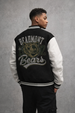 DRIPZY Unisex Varsity Jacket with Bears print. Crafted from 100% cotton 300 GSM fabric and a classic varsity fit, delivering premium comfort and bold athletic streetwear style.