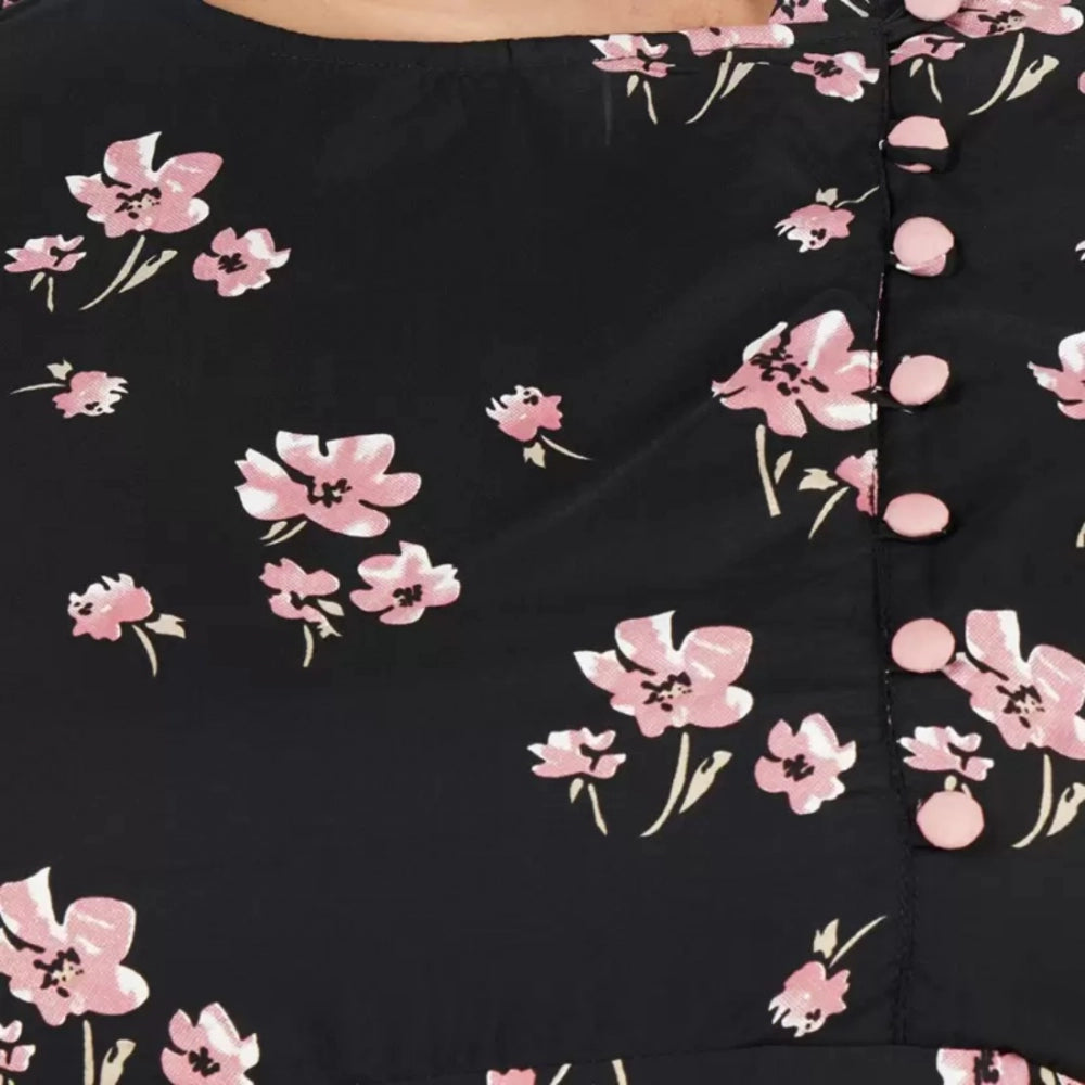 Women's maxi black dress made from poly crepe fabric features a round neck and short sleeves, perfect for casual occasions.