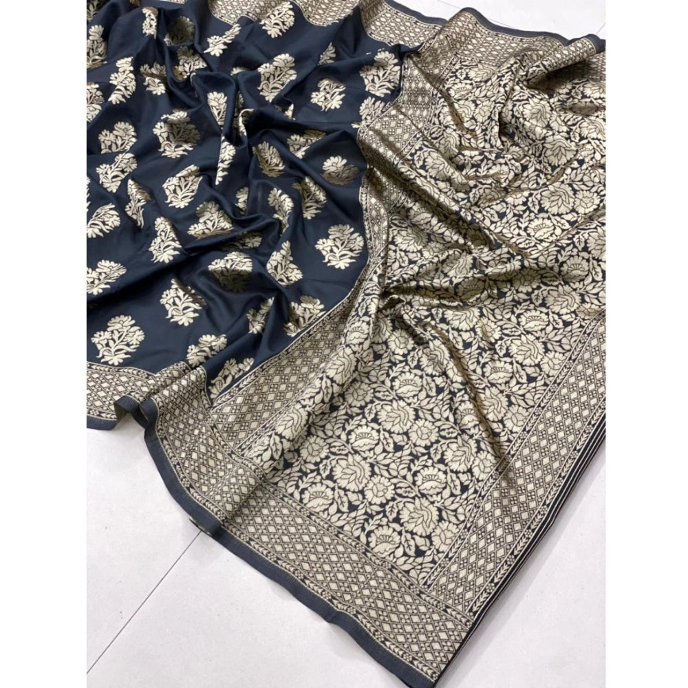 Generic Women's Soft Litchi Silk Jacquard Work Saree With Unstitched Blouse 5.5Mtr (Black)