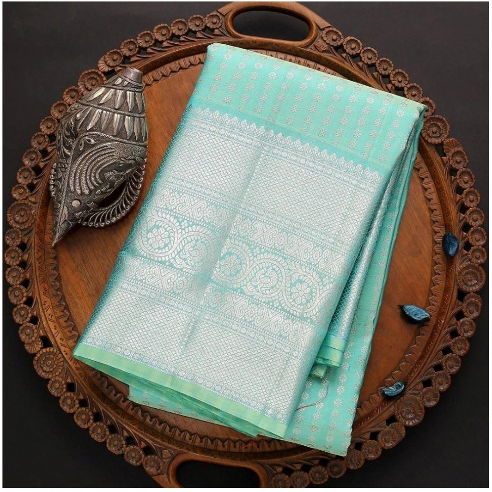 Generic Women's Soft Litchi Silk Jacquard Work Saree With Unstitched Blouse 5.5Mtr (Blue)