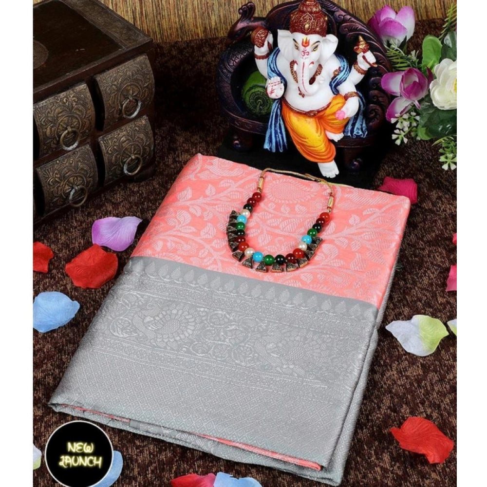Women's Soft Litchi Silk Jacquard Work Saree With Unstitched Blouse